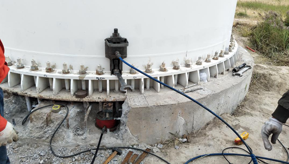 本工程于2017年實施,項目位于吉林省大安市威舍利風(fēng)電場,主要是對風(fēng)機(jī)錨板不平進(jìn)行糾偏處理。