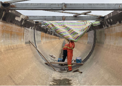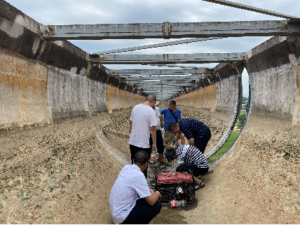 本工程于2023年實(shí)施,項(xiàng)目位于湖南省邵東市上沙江灌區(qū)左干渠佘田橋鎮(zhèn)齊興村,光洪渡槽的21#、63#排架基礎(chǔ)變形導(dǎo)致渡槽結(jié)構(gòu)存在安全問題、不能正常運(yùn)行。在基礎(chǔ)加固處理后,采用截柱糾偏的方法使其復(fù)位。