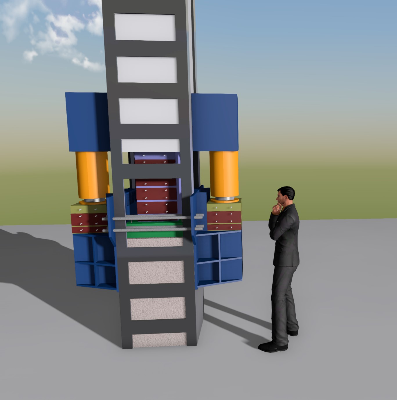 它是實(shí)現(xiàn)與千斤頂交替受力的關(guān)鍵,對強(qiáng)度和精度都提出很高的要求,不僅僅要進(jìn)行單塊墊塊的試驗(yàn),還要進(jìn)行多塊墊塊的疊合試驗(yàn)。