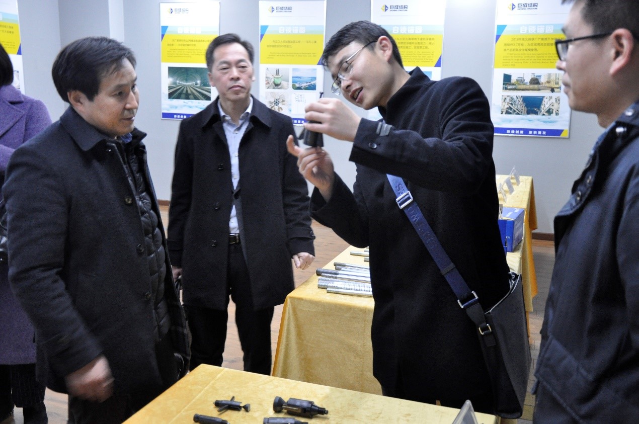 參觀過程中,各位來賓對巨成的各項新產品及新技術非常感興趣,仔細詢問了設計及施工等相關問題,同時對巨成這些年取得的成績感到高興,對巨成新技術在建筑物加固改造中的應用充滿信心,在參觀交流過程中,增進了各方的相互了解,加深了友誼,同時夯實了與兩大設計院深入合作的基礎,2019年巨成與兩大設計院將開啟合作的新篇章。