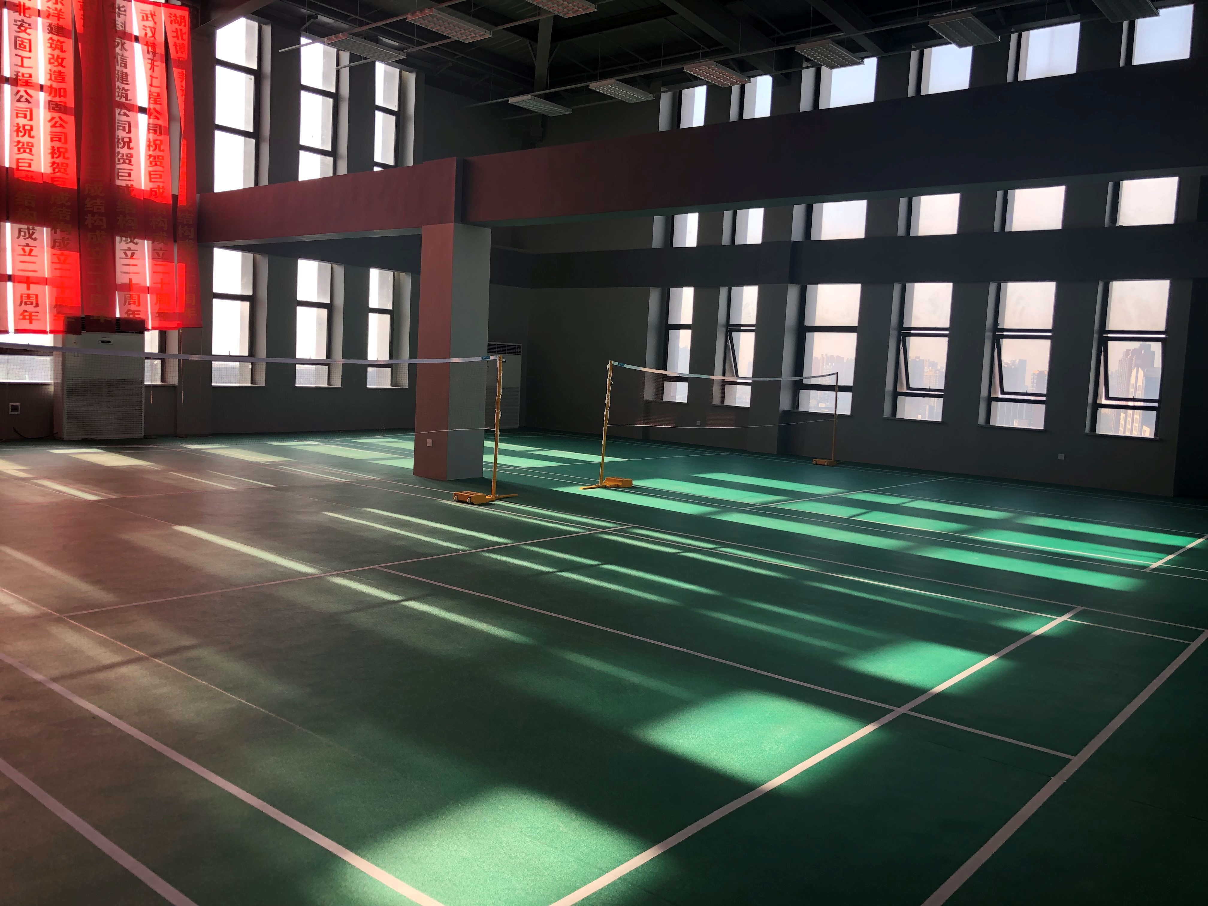 18層設(shè)置了羽毛球館、乒乓球場地、跑步機、動感單車、仰臥起坐板、臺球區(qū)等眾多健身項目,羽毛球館,地面采用專業(yè)的塑膠地面,具有防滑和緩沖作用,充分的保護員工的腳踝和膝蓋。