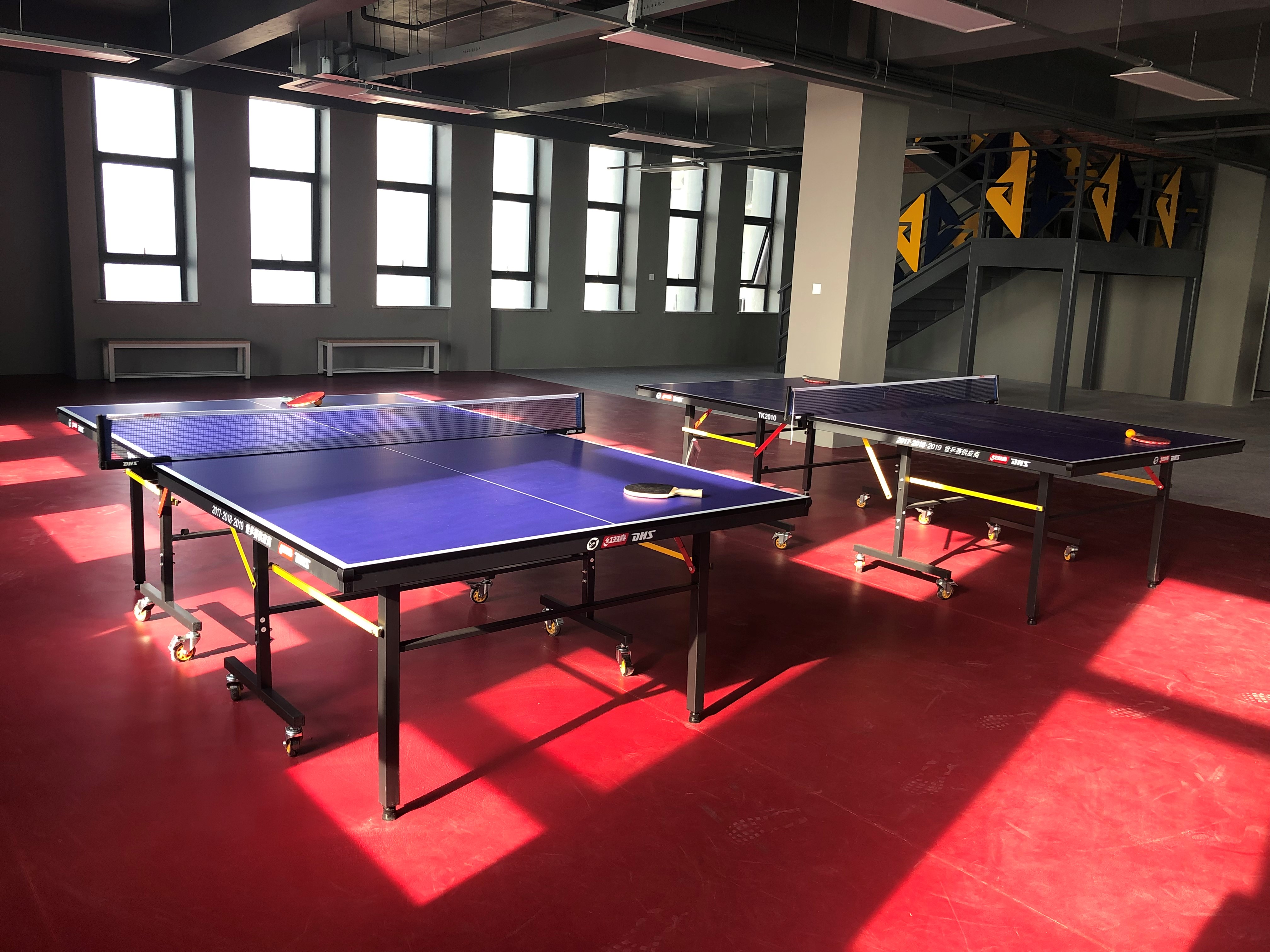 乒乓球場地設(shè)置合理,配置2套專業(yè)比賽乒乓球設(shè)施,采光良好,地面采用專業(yè)乒乓球塑膠地面,具有防滑和緩沖作用,充分的保護員工的腳踝和膝蓋,為不影響員工視線,場地設(shè)置為紅色。