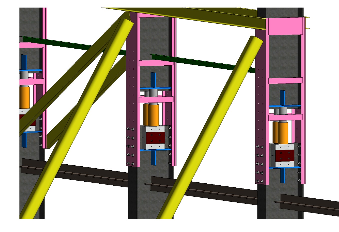 隨著頂升高度的增加,下部牛腿可快速向上滑動(dòng),鋼滑道與柱芯墊塊之間灌注的材料具有超早強(qiáng)的特點(diǎn),可以快速形成鋼管混凝土柱,從而大幅度縮短工期。