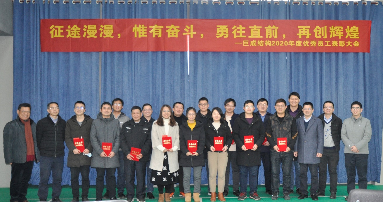 不平凡的2020年已經(jīng)過去,巨成結(jié)構(gòu)全體干部員工在公司董事會、經(jīng)理層的正確指導(dǎo)下,凝心聚力,團(tuán)結(jié)拼搏,取得可喜的成績,成績的背后包含著所有巨成人攜手共進(jìn)的辛勤汗水。2月3日下午,公司隆重召開2020年優(yōu)秀員工表彰大會對在2020年度工作中做出重大貢獻(xiàn)的優(yōu)秀員工進(jìn)行表彰,激勵全體員工向先進(jìn)典型學(xué)習(xí),團(tuán)結(jié)奉獻(xiàn)、開拓進(jìn)取。公司董事陳明祥,董事、總經(jīng)理萬雄衛(wèi),副總經(jīng)理張暢、廖杰洪,監(jiān)事會主席閔啟武參加會議。