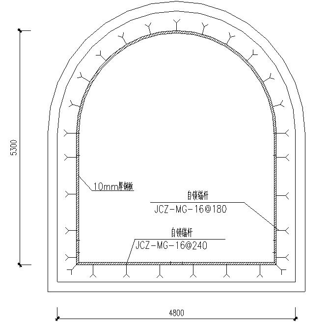 隧洞加固方案采用內(nèi)襯鋼板加固。鋼板與管片采用自鎖錨桿進(jìn)行錨固。