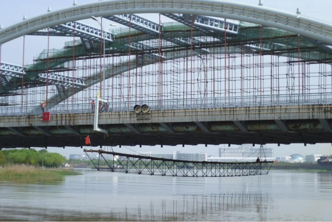 本工程于2010年實(shí)施。主要施工內(nèi)容為橋梁裂縫處理和粘貼碳纖維布加固。應(yīng)用巨成不封道橋梁檢修架車,不影響交通的情況下完成施工任務(wù),社會(huì)經(jīng)濟(jì)價(jià)值顯著。