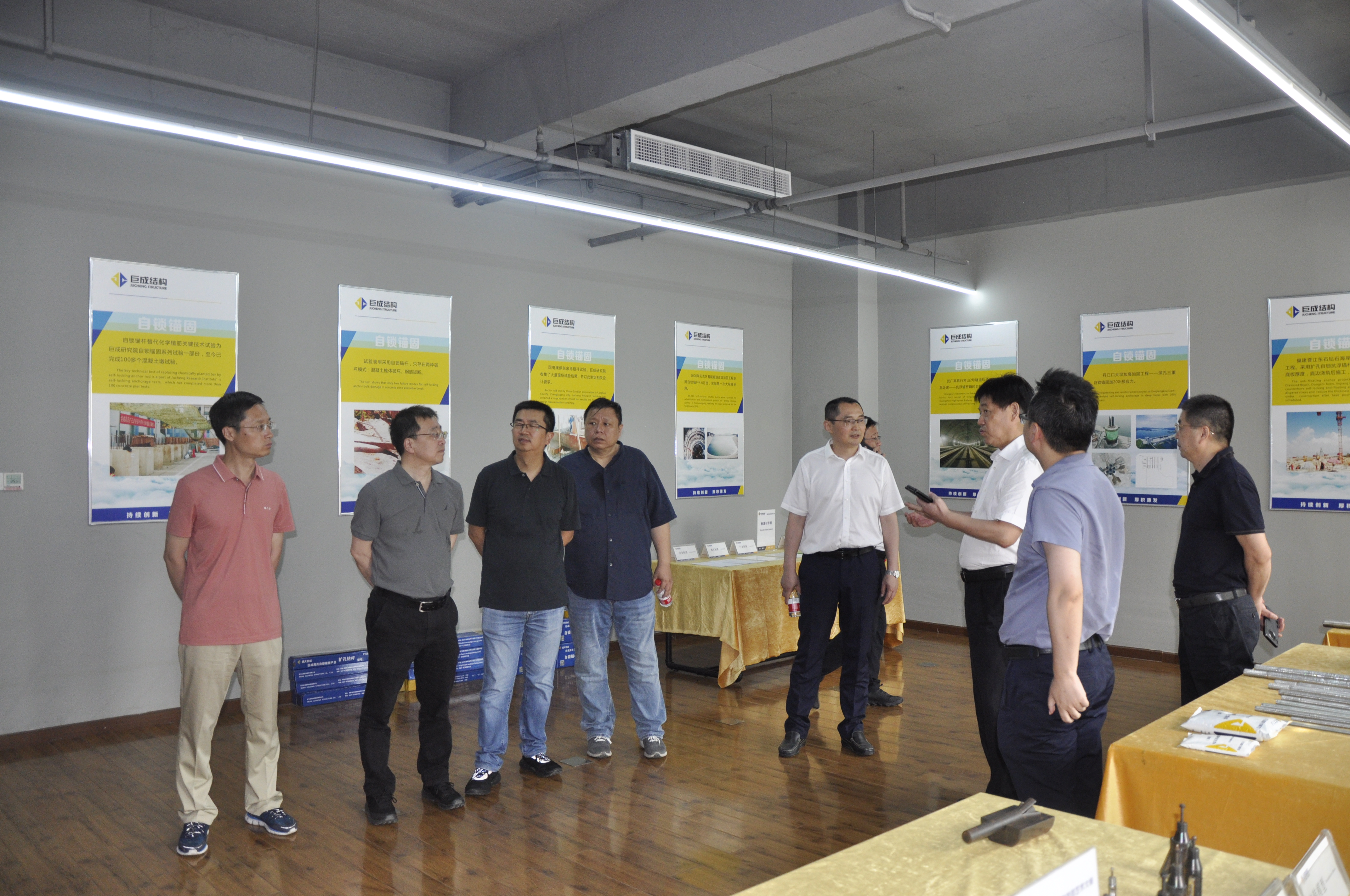 現(xiàn)場觀摩后甘肅省建筑院領(lǐng)導(dǎo)來到四樓展廳參觀,來賓們通過參觀了解了巨成的發(fā)展過程和專有技術(shù),重點了解巨成的兩大核心技術(shù):自鎖錨固和鋼滑道頂升技術(shù)。隨后雙方在四樓會議進行座談,高作平董事長對李書記一行表示熱烈的歡迎,巨成公司是由武漢大學(xué)和教授團隊聯(lián)合創(chuàng)辦的,在實踐中中不斷探索發(fā)展,經(jīng)過24年的前進,經(jīng)過了三個階段的發(fā)展,現(xiàn)在是正在處于戰(zhàn)略升級做大做強的階段,巨成以科技為核心的創(chuàng)新性企業(yè),與全國各大設(shè)計院有戰(zhàn)略合作,巨成以設(shè)計院為源頭,將科技成果轉(zhuǎn)化為生產(chǎn)力。