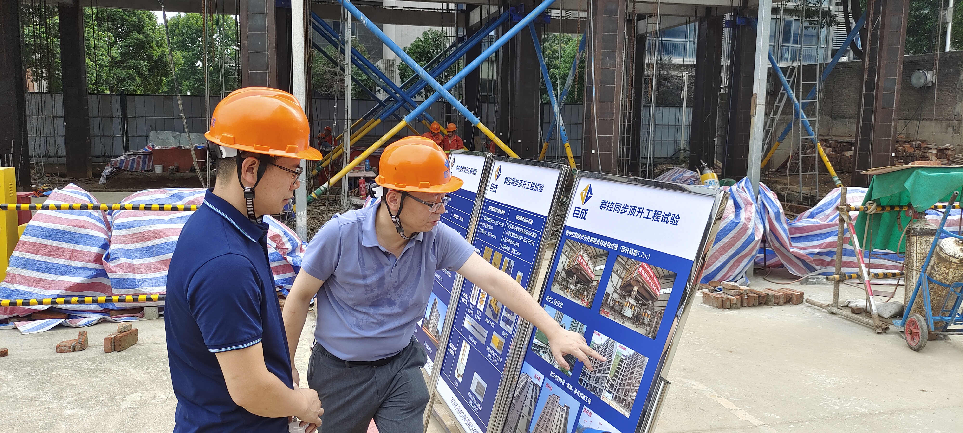 在巨成群控同步頂升工程試驗項目現(xiàn)場,巨成副總經(jīng)理張暢介紹了頂升試驗的背景和目的,并對頂升原理及群控同步頂升大型數(shù)控設(shè)備做了詳細(xì)講解。雙方對鋼滑道頂升技術(shù)應(yīng)用場景展開了熱烈討論,并就試驗過程中的相關(guān)技術(shù)要點(diǎn)、施工流程以及應(yīng)用進(jìn)行了深入交流。