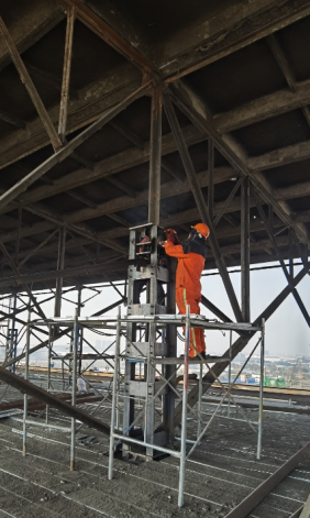 目前,項目部約有200人正緊鑼密鼓地開展鋼天窗架頂降的相關(guān)施工準(zhǔn)備工作,如鋼滑道安裝、天窗架構(gòu)件加固、縱橫向支撐安裝、設(shè)備安裝調(diào)試等。